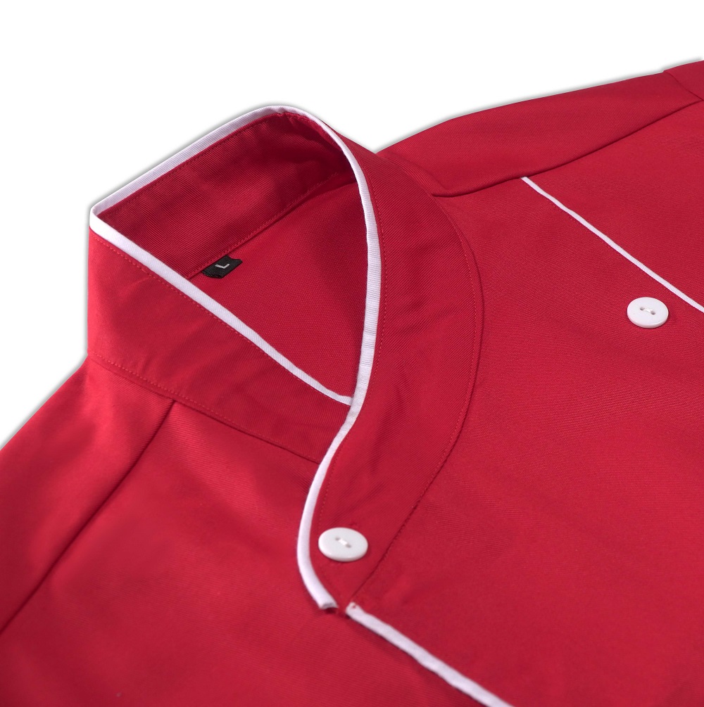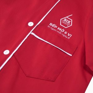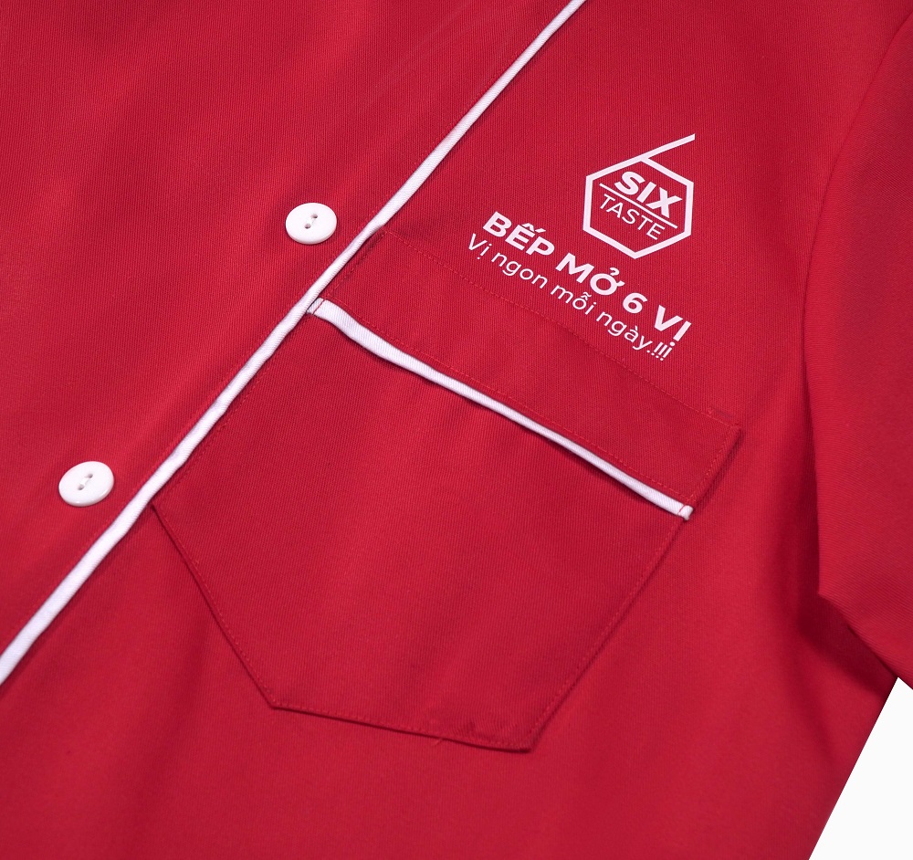 • Kiểu dáng: Áo bếp ngắn tay. Dáng suông rộng rãi giúp người mặc thoải mái làm việc. Thiết kế 2 hàng cúc trước ngực tạo điểm nhấn nổi bật cho trang phục.