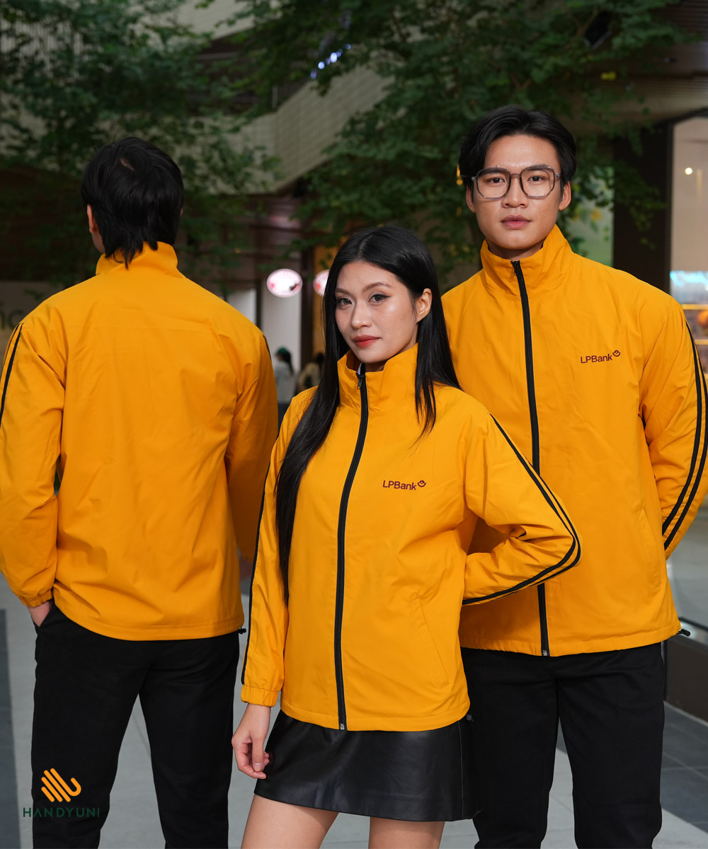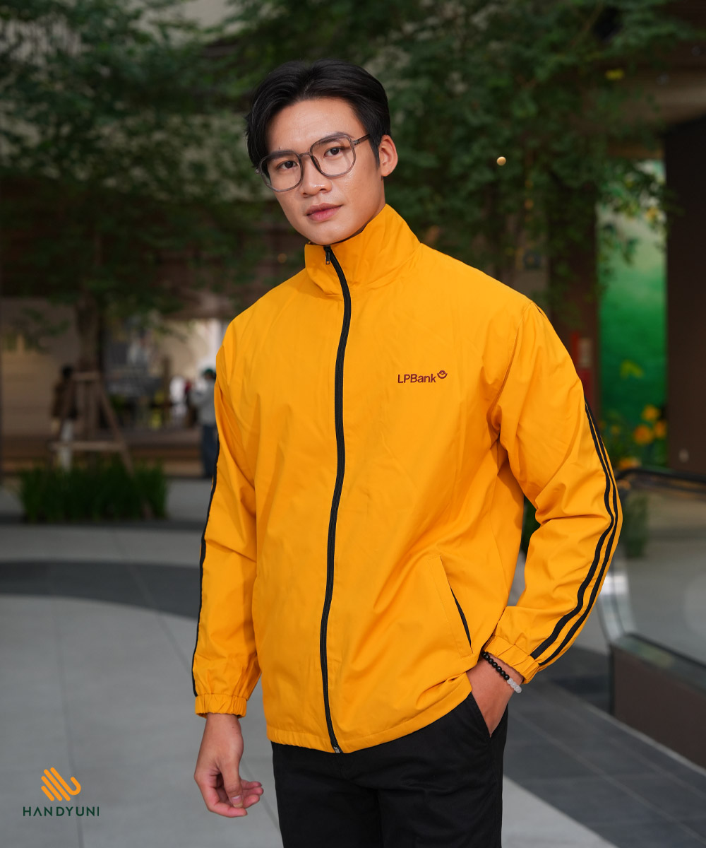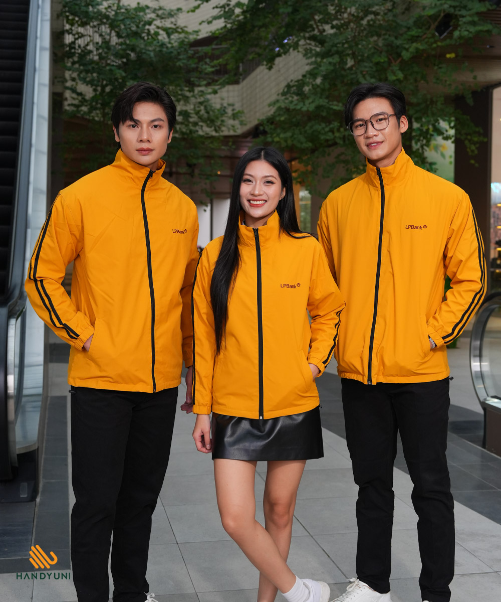 Điểm gây ấn tượng mạnh nhất của áo khoác gió đồng phục LPBank chính là màu vàng đặc trưng – biểu tượng của năng lượng, sự hứng khởi và tinh thần tích cực. Gam màu này không chỉ mang tính nhận diện cao mà còn thể hiện triết lý thương hiệu LPBank: luôn năng động, sáng tạo và hướng đến sự phát triển bền vững.