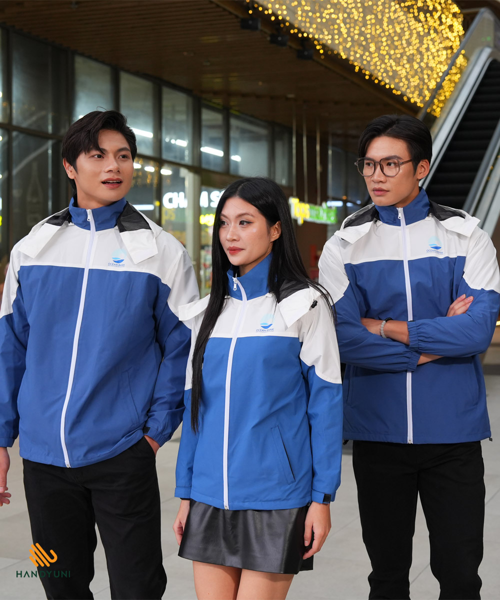 Khi chọn áo khoác gió đồng phục ngân hàng OceanBank, thiết kế, màu sắc và logo đóng vai trò quan trọng trong việc tạo hình ảnh chuyên nghiệp cho nhân viên. Tại Handy Uni, mỗi chi tiết trên áo đều được chăm chút tỉ mỉ, kết hợp phong cách hiện đại, thanh lịch và đồng bộ với hình ảnh của OceanBank.