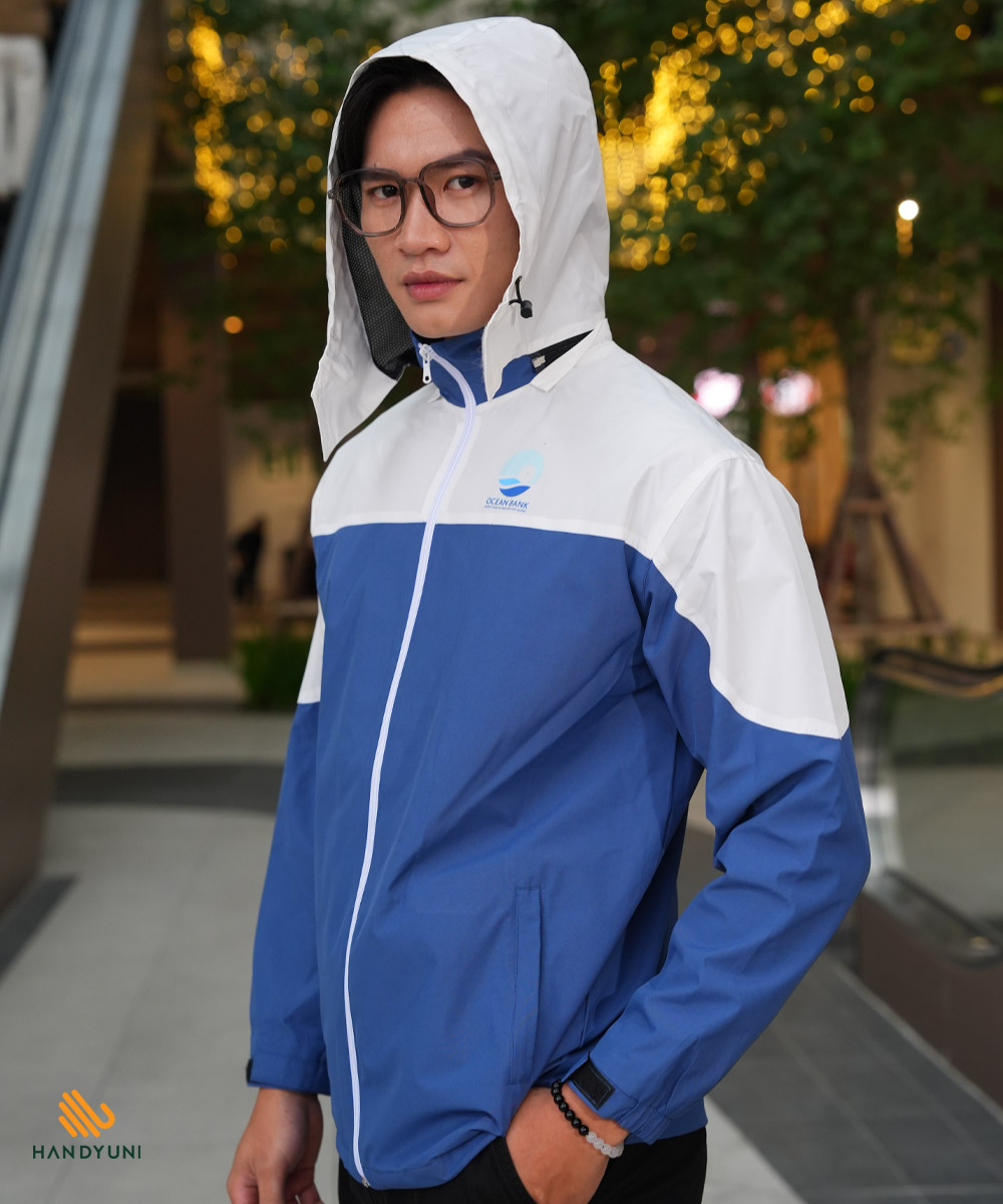 Áo khoác gió OceanBank được may theo form chuẩn, vừa vặn với cơ thể, mang đến vẻ ngoài gọn gàng, lịch sự nhưng vẫn đảm bảo sự linh hoạt khi di chuyển. Thiết kế tối giản, tinh tế, phù hợp với môi trường ngân hàng, sự kiện ngoại khóa hoặc các hoạt động ngoài trời.