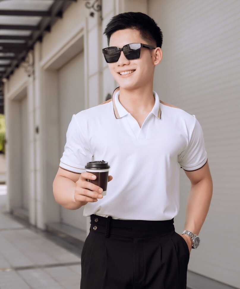 - Màu sắc: Màu trắng chủ đạo dễ dàng phối hợp với nhiều loại trang phục khác nhau. Viền cổ và tay áo phối màu nâu tạo sự tương phản tinh tế, mang đến vẻ ngoài năng động và chuyên nghiệp có thể coi là điểm nhấn tinh tế, sang trọng cho chiếc áo.