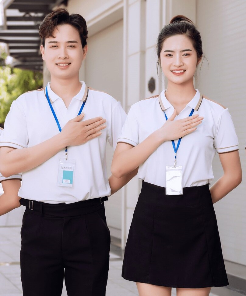 Áo polo đồng phục công ty màu trắng cổ chữ V mang đến vẻ thanh lịch, trẻ trung mà không lo bị lỗi mốt, phù hợp với nhiều đối tượng và phong cách khác nhau với: