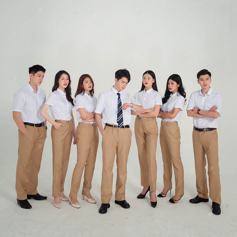 - Phù hợp với mọi người: Đảm bảo rằng áo sơ mi có sẵn trong các size phù hợp với mọi người, từ size nhỏ đến lớn. Việc có các size đa dạng sẽ giúp mọi nhân viên cảm thấy thoải mái và tự tin khi mặc đồng phục.