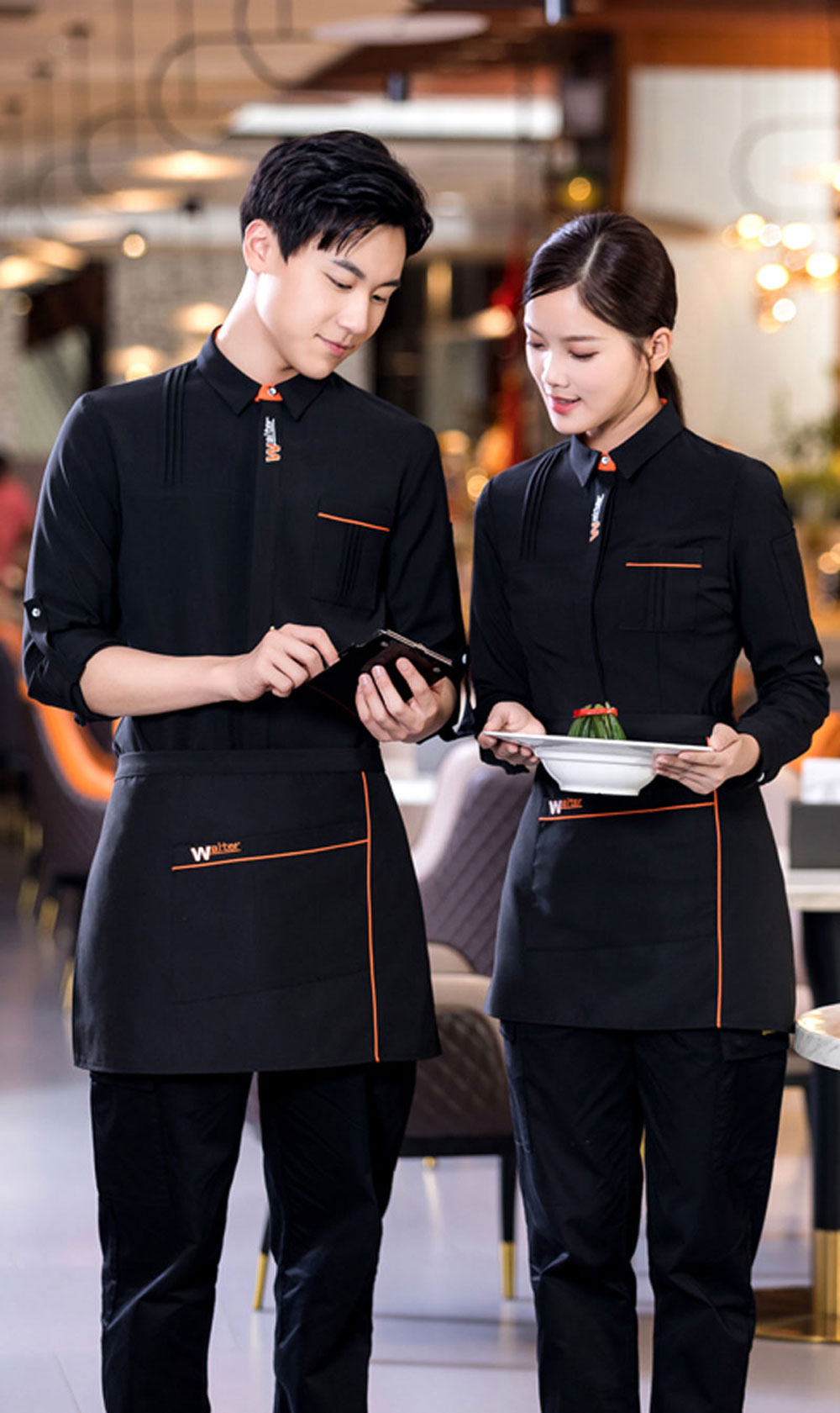 Áo sơ mi đồng phục nhà hàng màu đen phối sọc cam