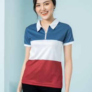 Áo thun đồng phục phối xanh đỏ trắng độc đáo, form Regular Fit, vải Lacoste Soft