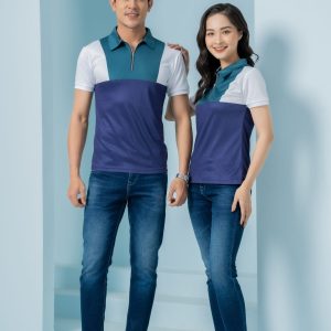Áo thun đồng phục xanh phối trắng hot trend, form Regular Fit, vải Lacoste Soft