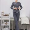 - Kiểu dáng: Áo ngắn tay cổ chữ V được may chiết eo giúp tôn vóc dáng của người mặc, quần suông dài với ống đứng basic.