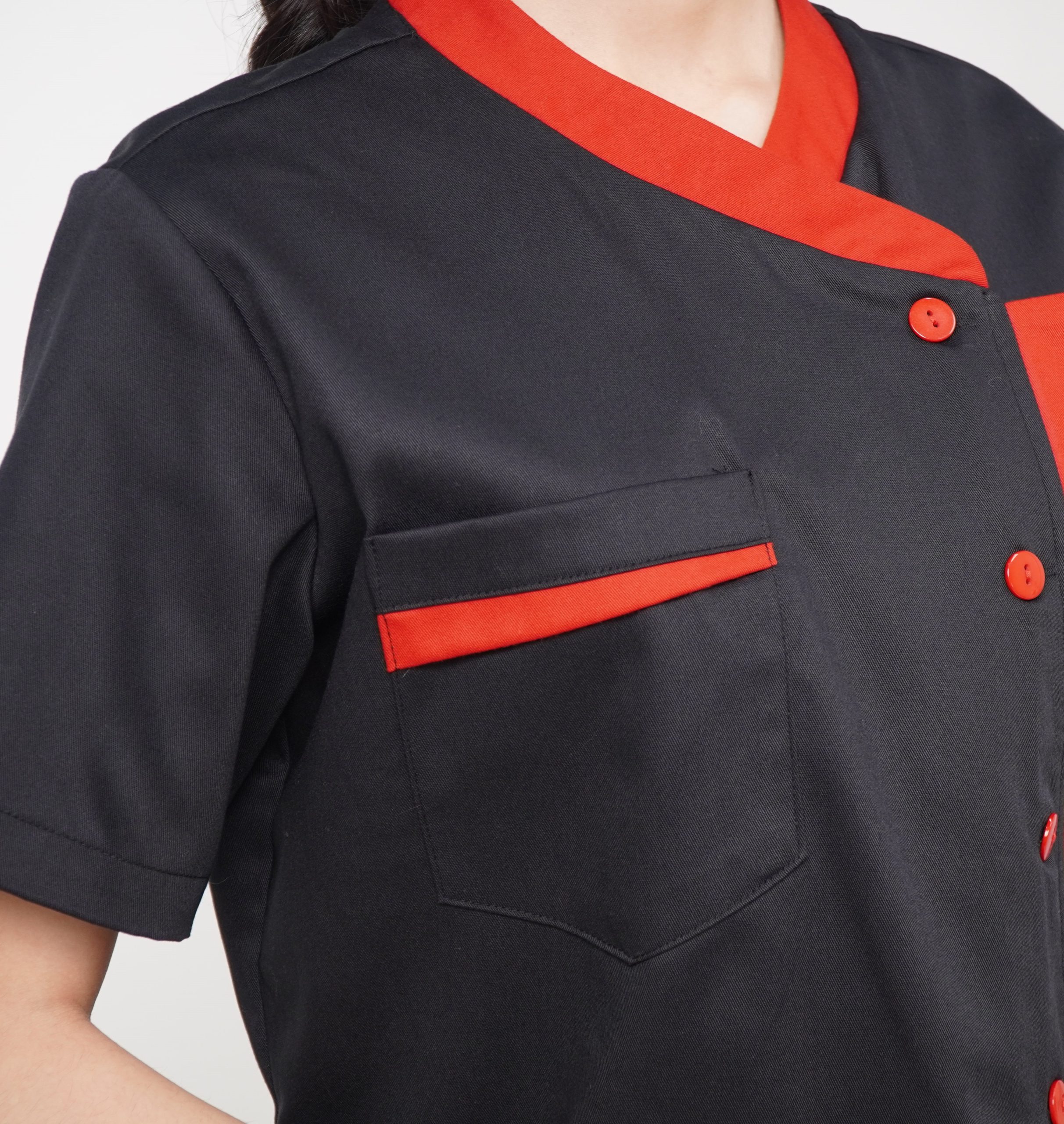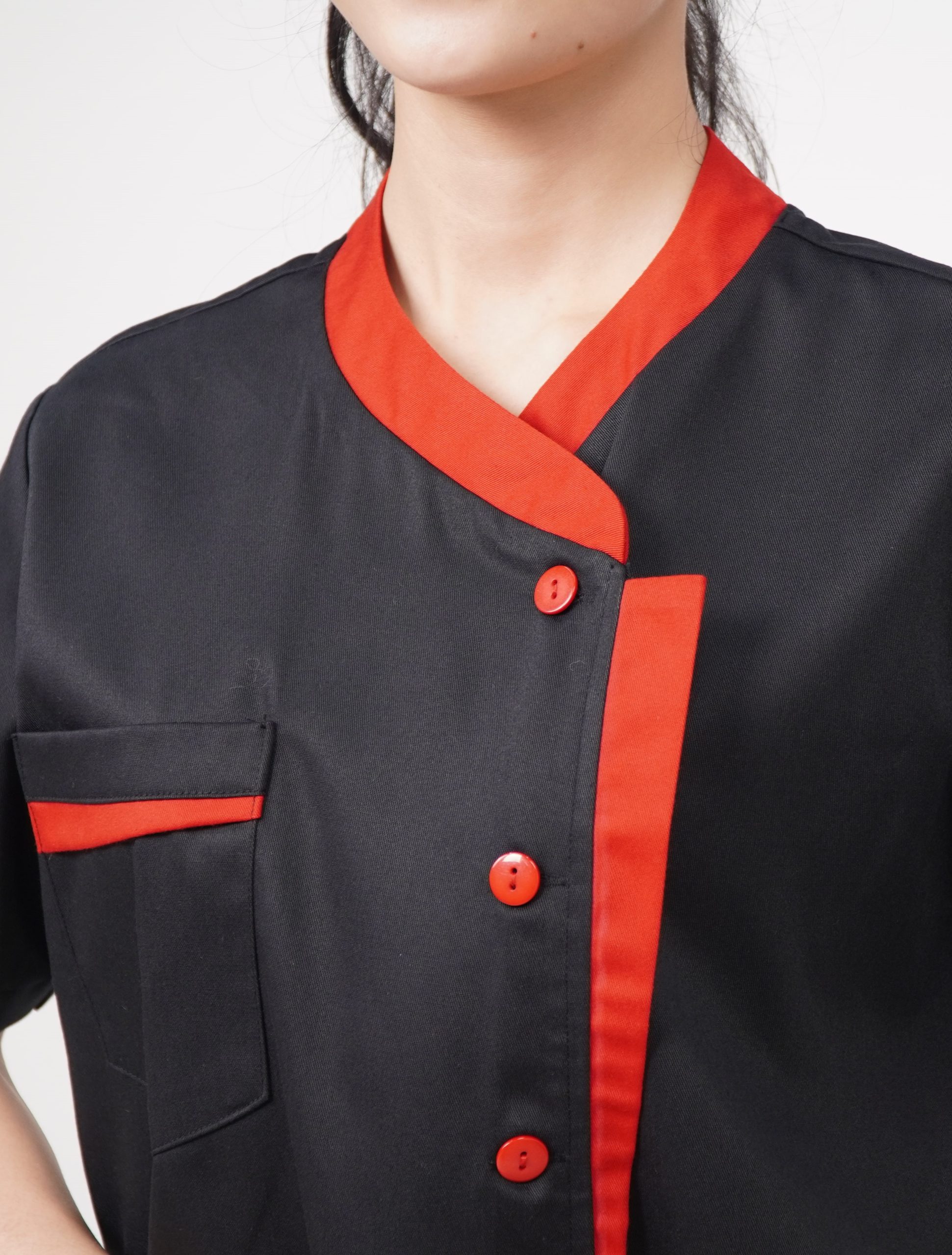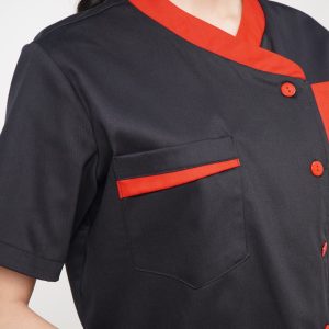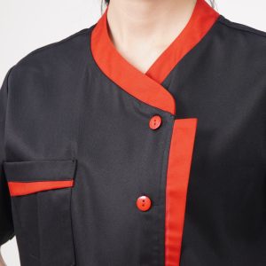 Đồng phục áo bếp Handy Uni mẫu 4 ngắn tay màu đen phối viền đỏ là thiết kế mới mẻ, khác biệt được cách điệu từ những chiếc áo bếp truyền thống. Đây sẽ là sự lựa chọn hoàn hảo cho không gian bếp của bạn thêm sang trọng, chuyên nghiệp.