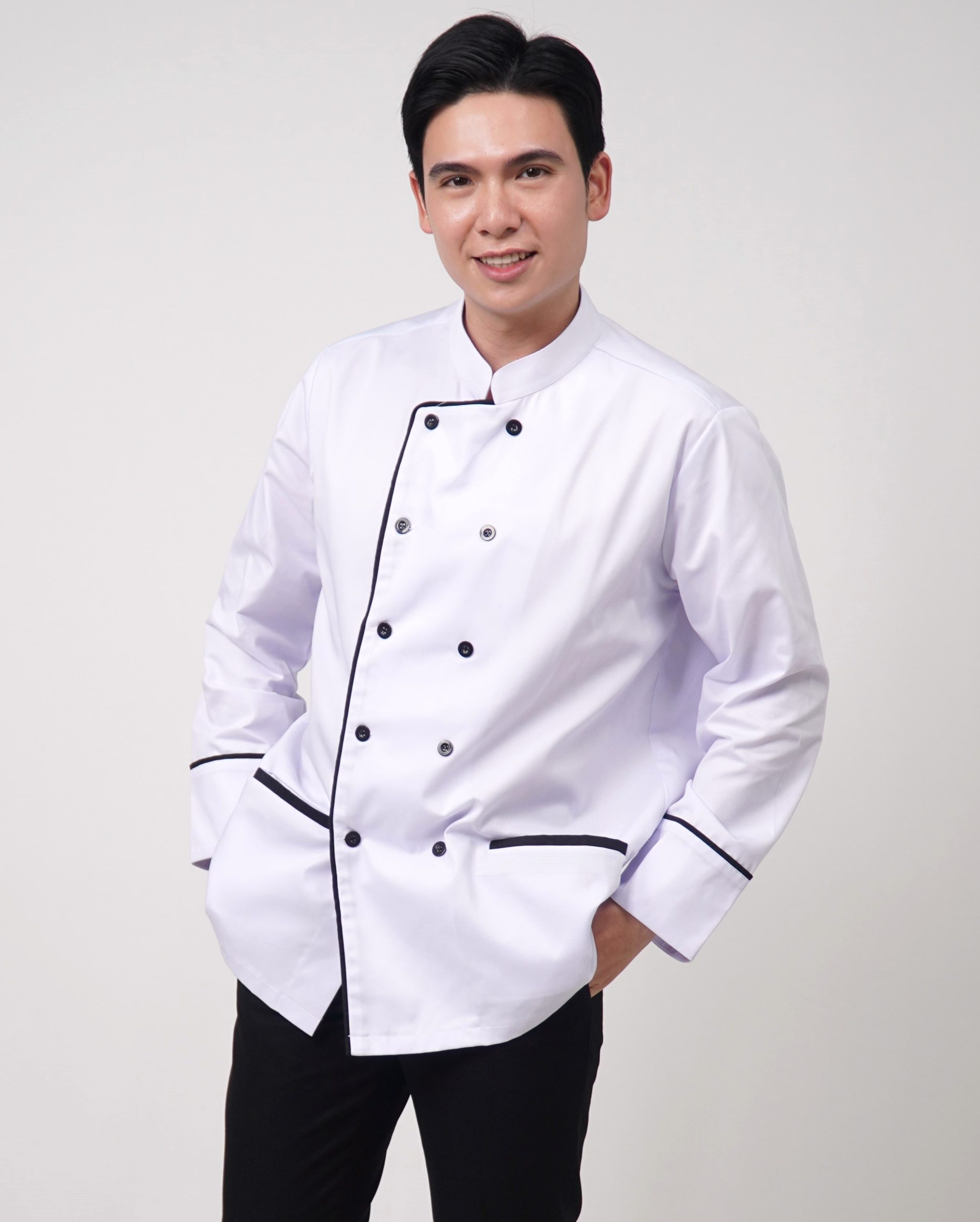 3. Đặt hàng ngay áo đồng phục bếp màu trắng hai hàng khuy tại Handyuni để được trải nghiệm sự khác biết