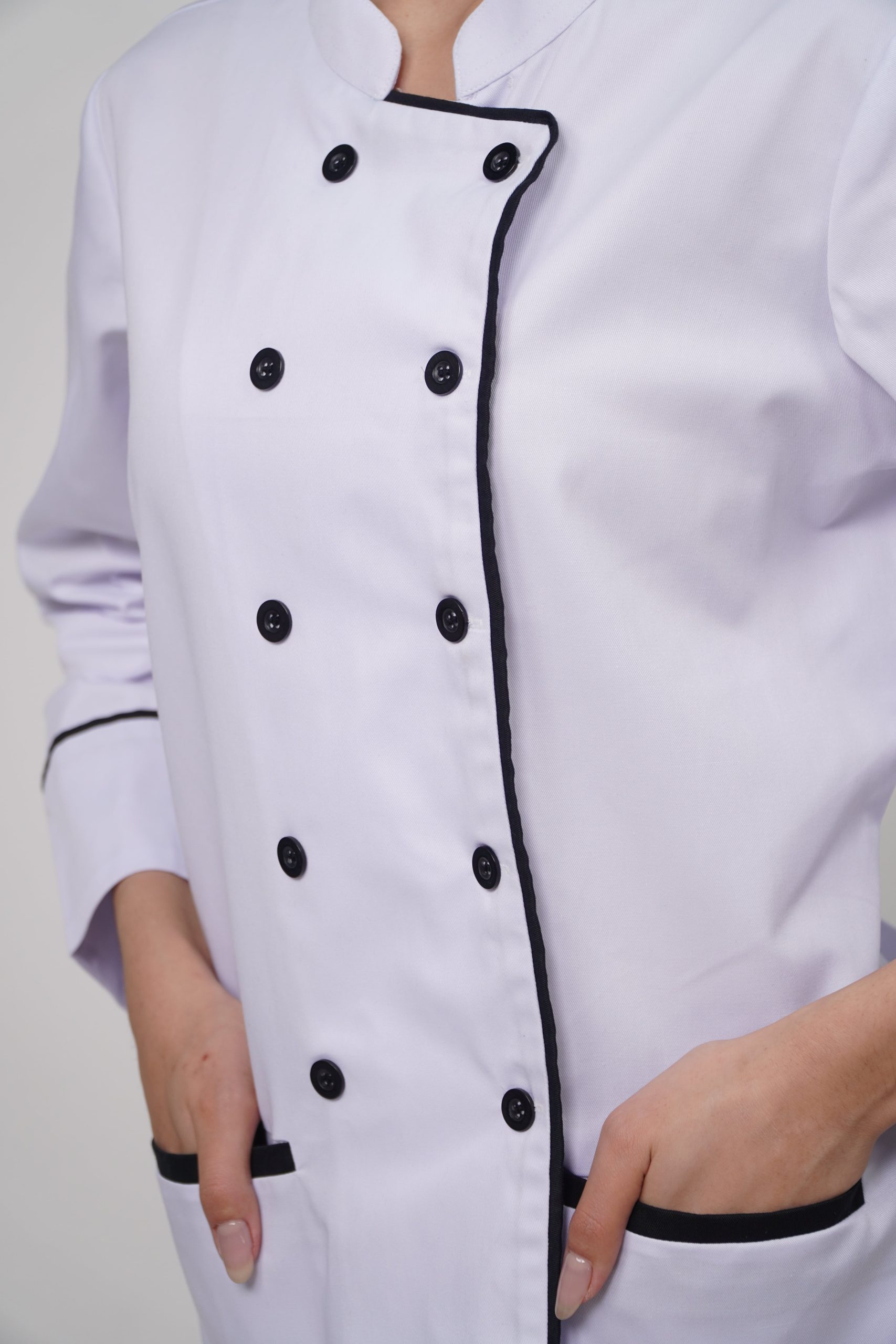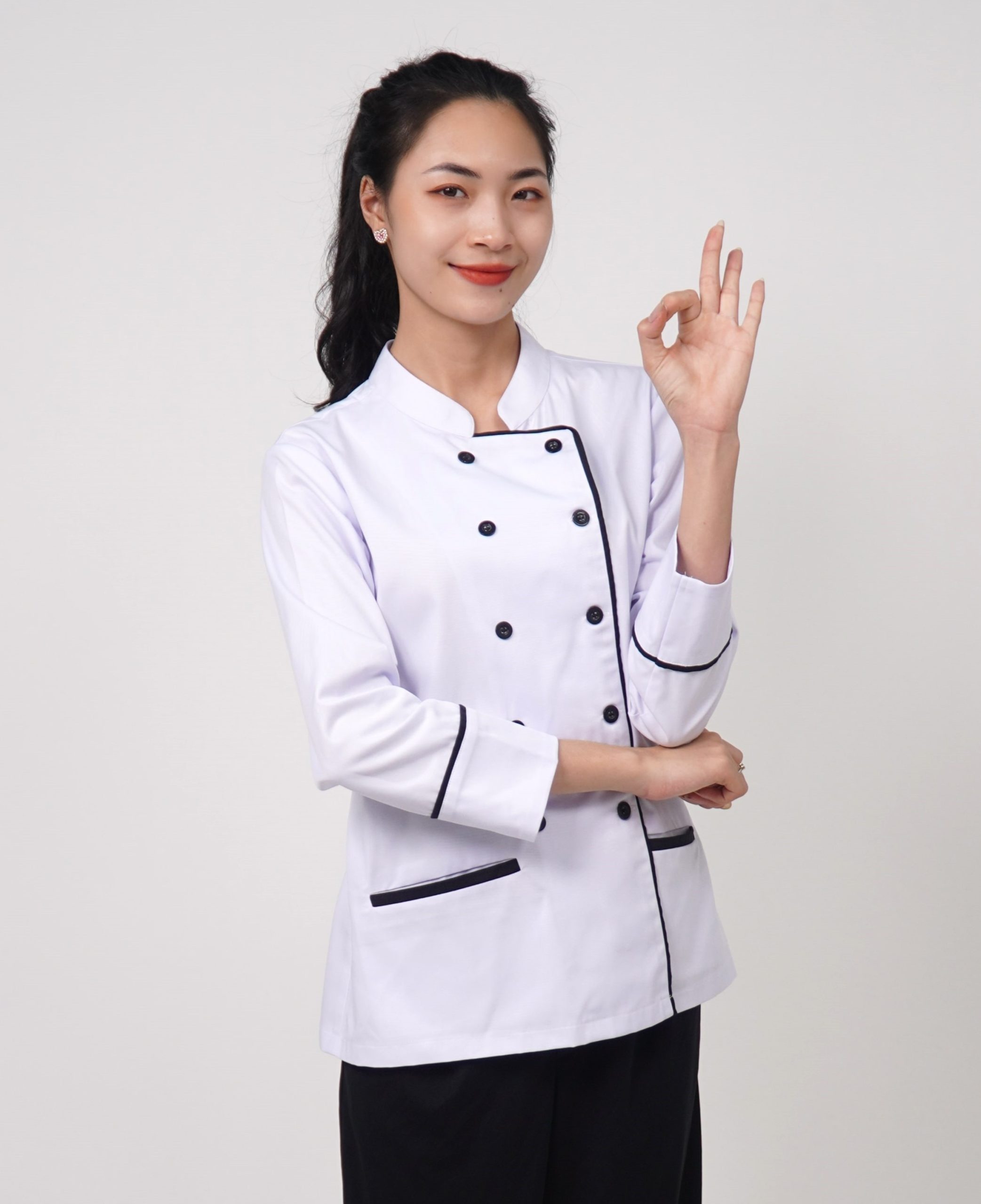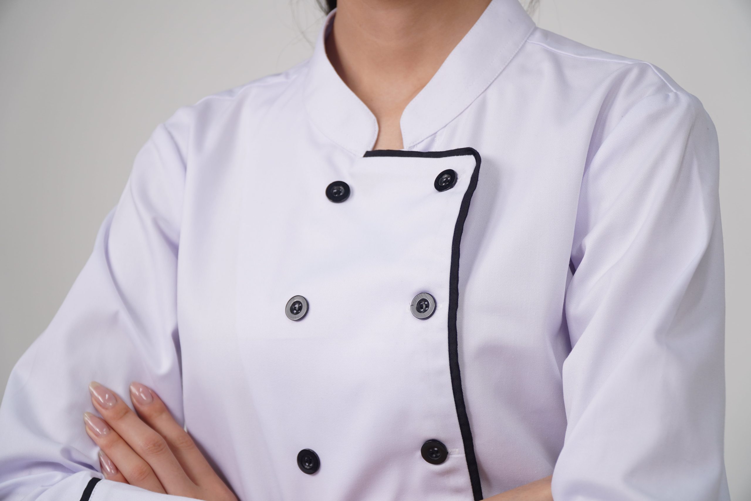 1. Ưu điểm nổi bật của đồng phục áo bếp màu trắng hai hàng khuy