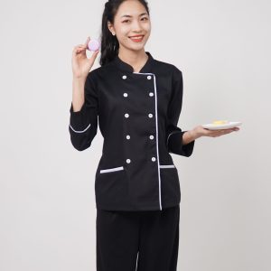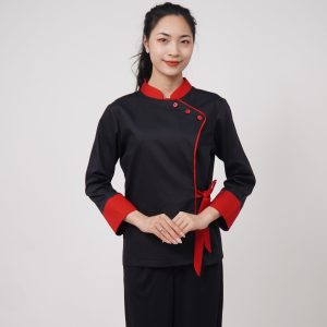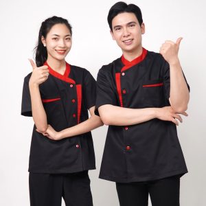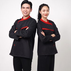 Đồng phục áo đầu bếp màu đen viền đỏ Handy Uni