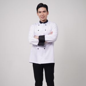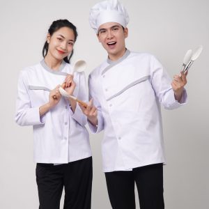 Đồng phục áo bếp màu trắng hai hàng khuy phổ biến