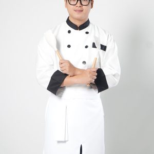 Áo đồng phục bếp màu trắng một hàng cúc vạt chéo