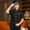 - Đồng phục Bellman màu đen lịch sự gây ấn tượng đầu tiên với kiểu dáng áo cổ tàu dài tay, dáng áo ôm vừa khít người mặc. Tạo cho mọi người cảm giác khi nhìn vào là sự tôn trọng, lịch sự và nghiêm túc.