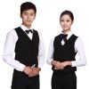 – Về màu sắc: Màu sắc chủ đạo của mẫu đồng phục này là xám phối cổ áo và viền túi áo màu đen, quần đồng phục màu đen. Những màu sắc này không chỉ thể hiện sự chỉn chu lại có thể che vết bẩn tốt trong khi làm việc. Ngoài ra còn có thể phù hợp với nhiều phong cách trang trí khách sạn, resort khác nhau.