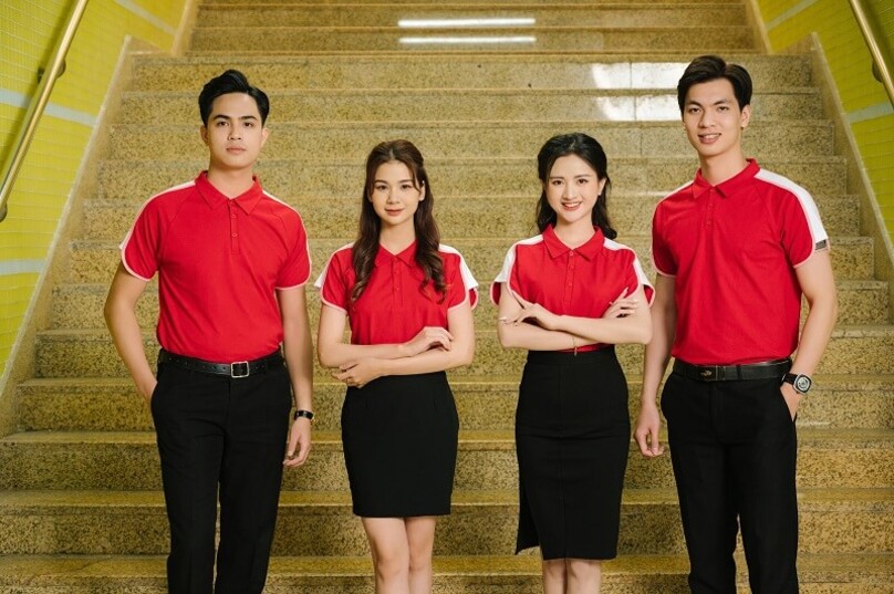 - Về màu sắc: Áo mang màu sắc đỏ tượng trưng cho sự năng động, sôi nổi, nhiệt huyết, rất thích hợp để làm đồng phục công ty.