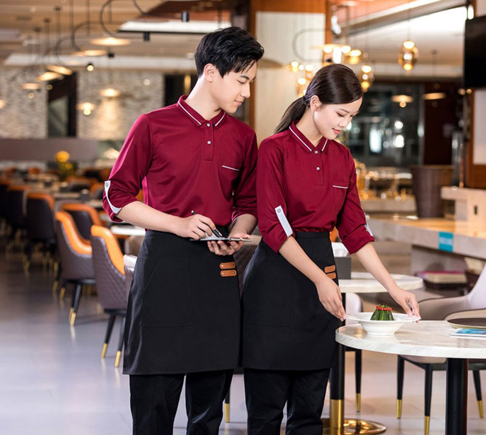 Có rất nhiều khách hàng nghĩ nên lựa chọn những loại đồng phục có tay áo ngắn để thuận tiện trong quá trình làm việc. Tuy nhiên đồng phục nhà hàng dài tay có cổ nhà hàng màu đỏ cũng được thiết kế để phù hợp với công việc của nhà hàng.