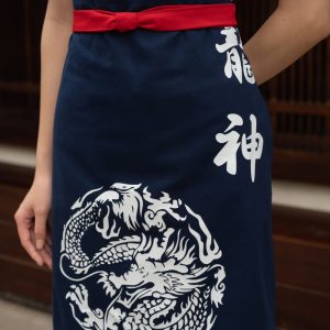 - Các mẫu đồng phục nhà hàng Nhật Bản thường được chú trọng vào họa tiết để tạo nên sự độc đáo và nhận dạng. Chọn họa tiết là những hoa văn liên quan đến văn hóa truyền thống Nhật Bản để tạo sự khác biệt giữa các nhà hàng Nhật với nhau. Với đồng phục nhà hàng Nhật Bản mẫu 05, Handy Uni đã lựa chọn họa tiết rồng – biểu tượng tâm linh của đất nước xứ sở hoa anh đào.