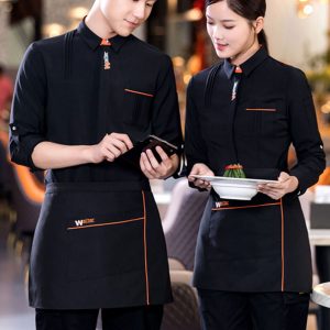 Áo sơ mi đồng phục nhà hàng màu đen phối sọc cam