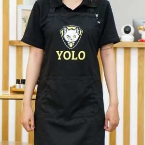 Đồng phục pet shop áo đen tạp dề đen YOLO thoải mái, tay ngắn, vải Lacoste Soft, form Loose Fit