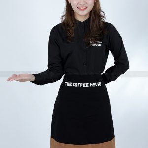Đồng phục quán cà phê Handy Uni mẫu 6 là sự kết hợp giữa áo sơ mi dài tay màu đen với tạp dề ngắn màu đen phối viền dưới màu nâu. Đây sẽ là mẫu đồng phục quán cà phê dành cho các cửa hàng hướng tới sự sang trọng, cao cấp và hiện đại.