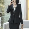 Đồng phục quản lý khách sạn màu đen, cổ cách điệu mang đến vẻ ngoài sang trọng và chuyên nghiệp. Sự kết hợp tinh tế giữa màu sắc và kiểu dáng không chỉ tôn lên phong cách đẳng cấp mà còn thể hiện sự uy tín và đẳng cấp của khách sạn.