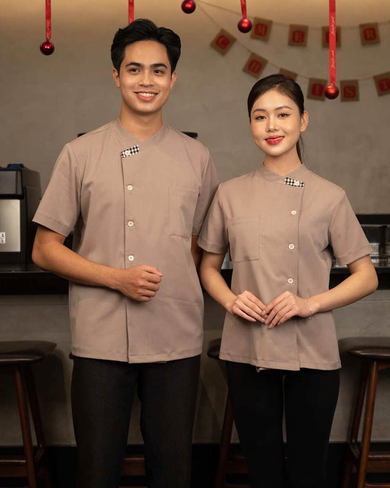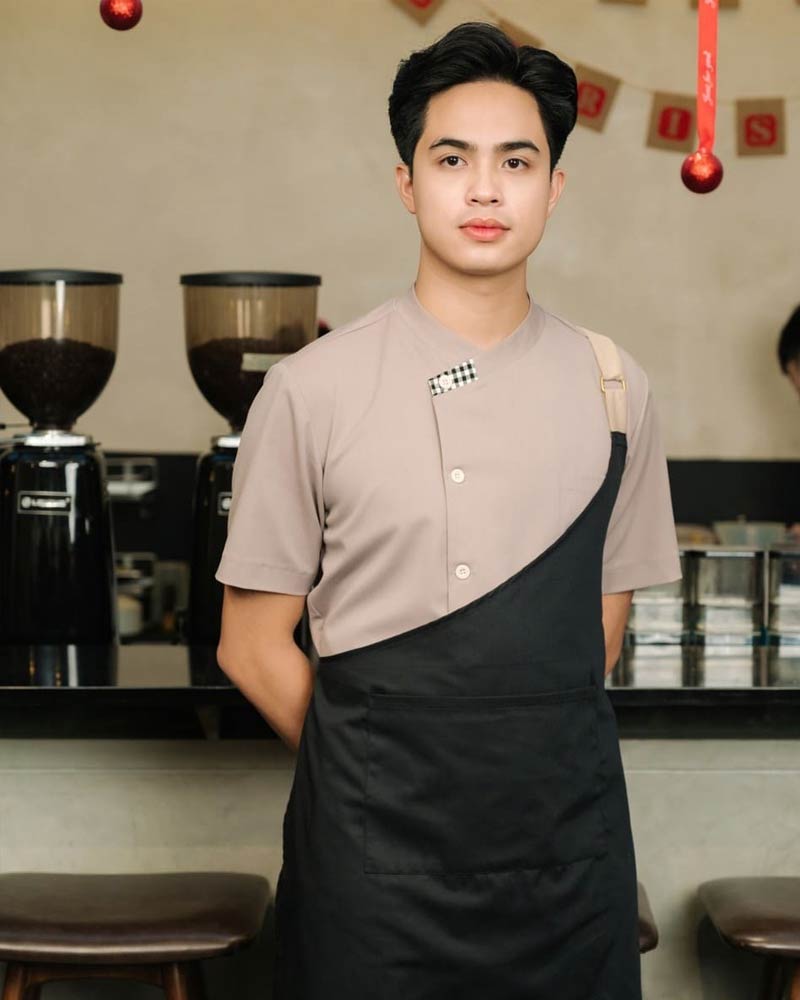 Đồng phục tạp dề cách điệu đeo chéo màu đen nhà hàng Tây Âu