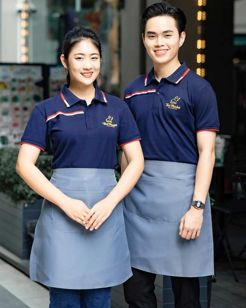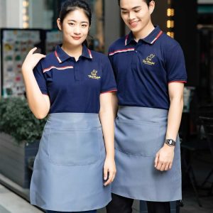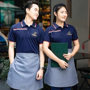 Đồng phục tạp dề dáng ngắn màu xám phối áo màu than đen