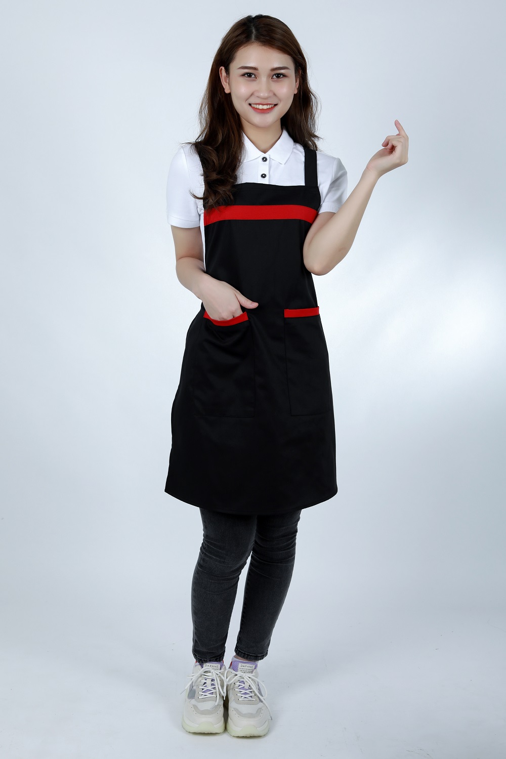 2. Bảng giá chi tiết trang phục tạp dề tiệm nail màu đen phối viền ngang màu đỏ