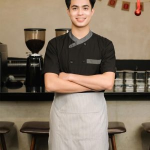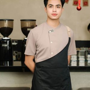 Đồng phục tạp dề vải trơn màu xám kết hợp áo sơ mi đen