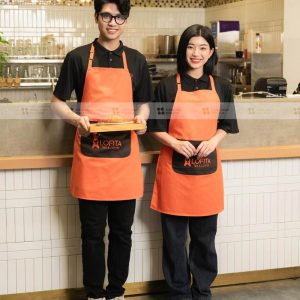 Tạp dề đồng phục màu cam quán trà cafe Lofita