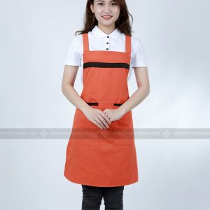 Đồng phục tạp dề yếm cao cấp màu cam phối đen dáng thẳng