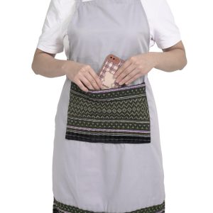 Đồng phục tạp dề yếm màu bạc vải kaki phối túi vuông thổ cẩm