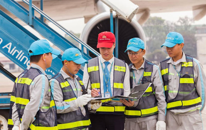 Không những chỉ làm việc ở trên cao mà hãng Vietnam Airlines cũng rất quan tâm đến nhân viên làm việc ở trên mặt đất. Trên thực tế thì nhân viên làm việc ở trên mặt đất cũng có những bộ đồng phục riêng biệt để phù hợp với công việc, hoàn cảnh.