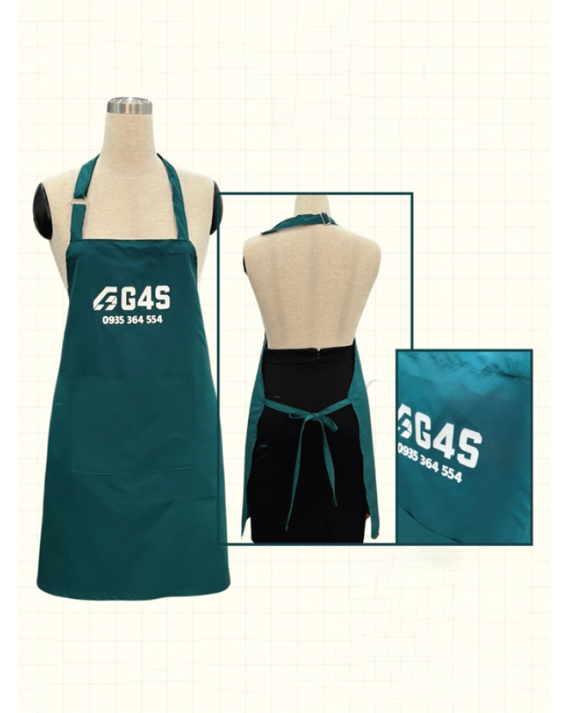 Tạp Dề Đồng Phục màu xanh cổ vịt phối túi in logo