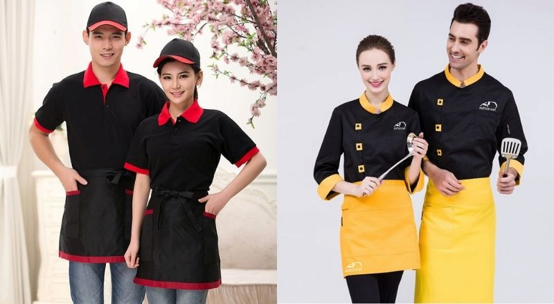 - Một số mẫu tạp dề dành cho nhà hàng và khách sạn có thể bao gồm tạp dề bếp truyền thống với các họa tiết hoặc màu sắc tương phản, tạo nên sự nổi bật và dễ nhận diện. Các tạp dề có kiểu dáng yếm hoặc dây đeo qua cổ cũng rất phổ biến, mang lại sự thoải mái và tiện lợi cho người mặc trong quá trình làm việc.